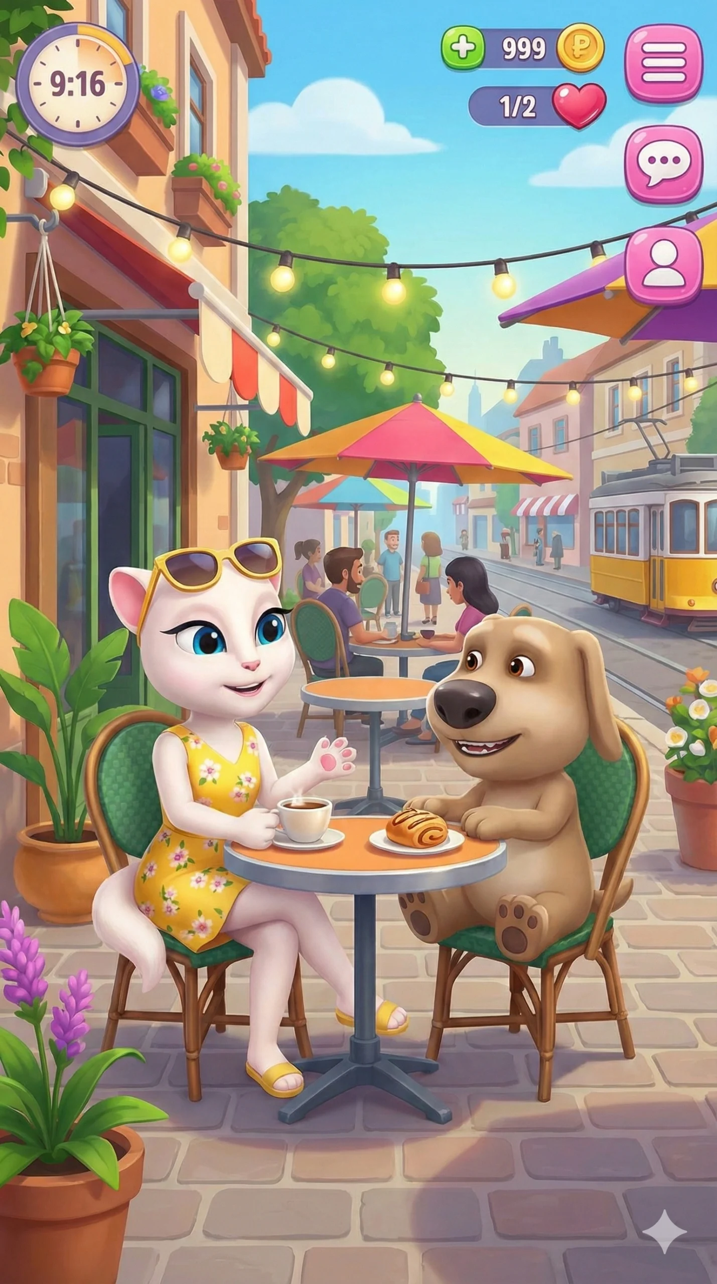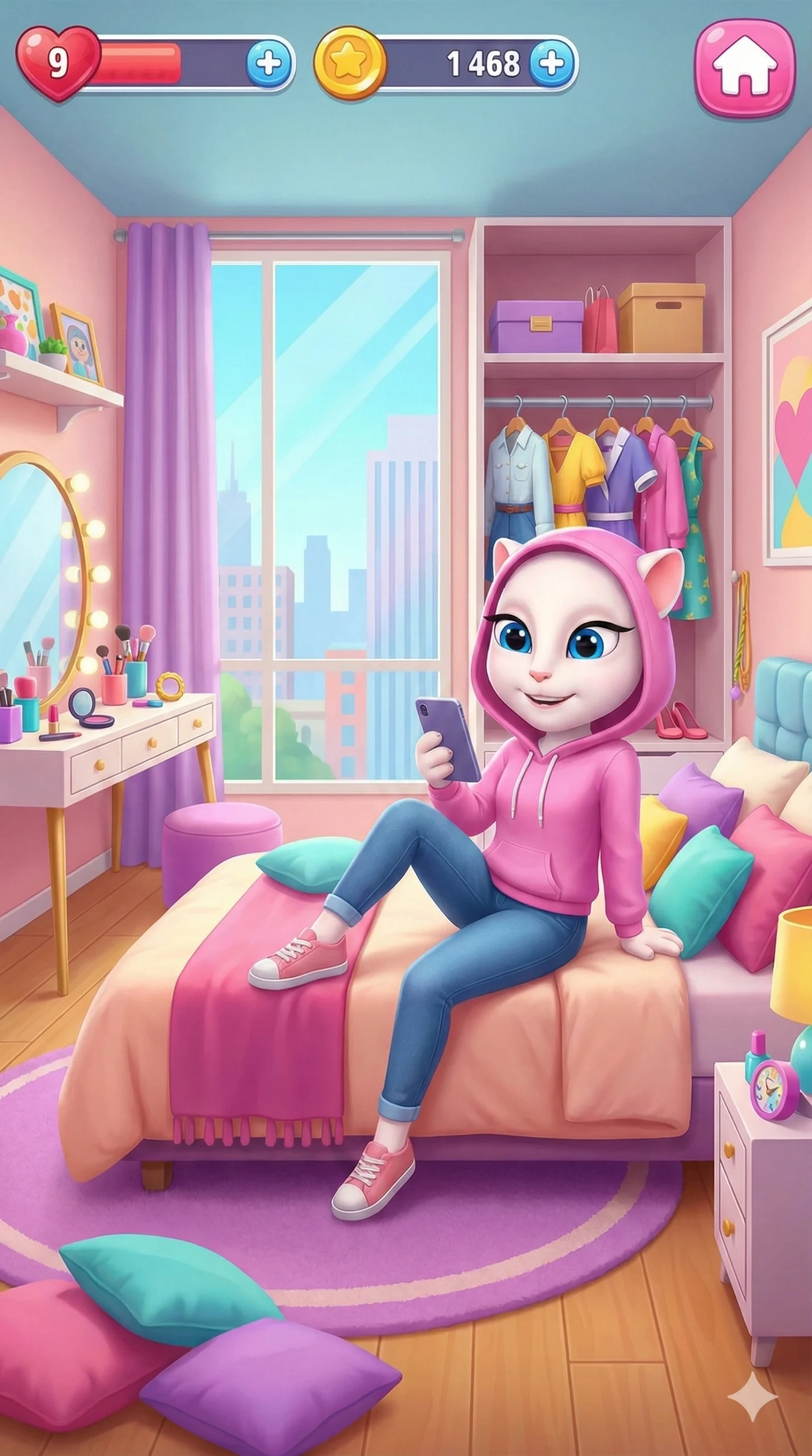 My Talking Angela 2 is a vibrant virtual pet game where you take care of a fashionable cat named Angela in a big city. Unlike the first game, she is not a baby anymore; she is an independent girl who loves dancing, baking, and traveling. You manage her daily needs, play mini-games, and explore various city locations like the Sweet Shop and Dance Studio.