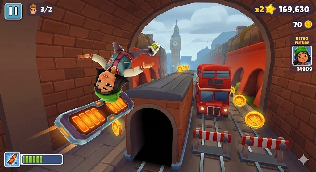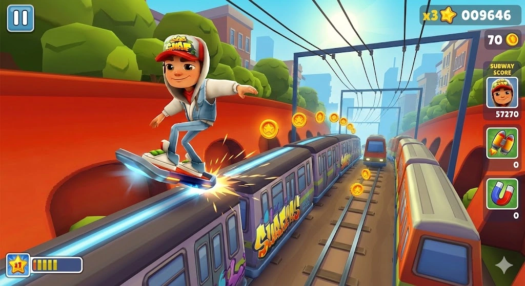 In the standard version, you must collect coins to buy upgrades. With Subway Surfers MOD APK, you start with unlimited coins and keys. You can buy every board and upgrade your power-ups to the maximum level instantly.